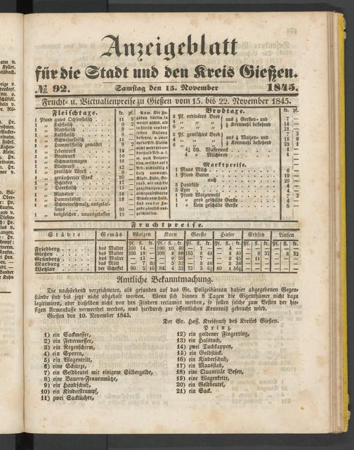 Anzeigeblatt für die Provinzialhauptstadt Gießen. 1840-1867
