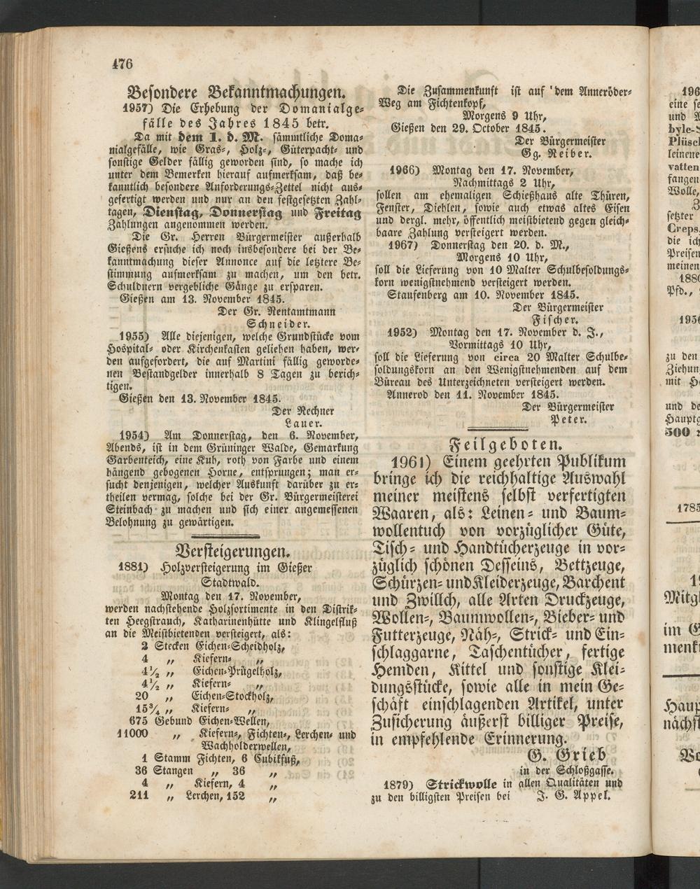 Anzeigeblatt für die Provinzialhauptstadt Gießen. 1840-1867