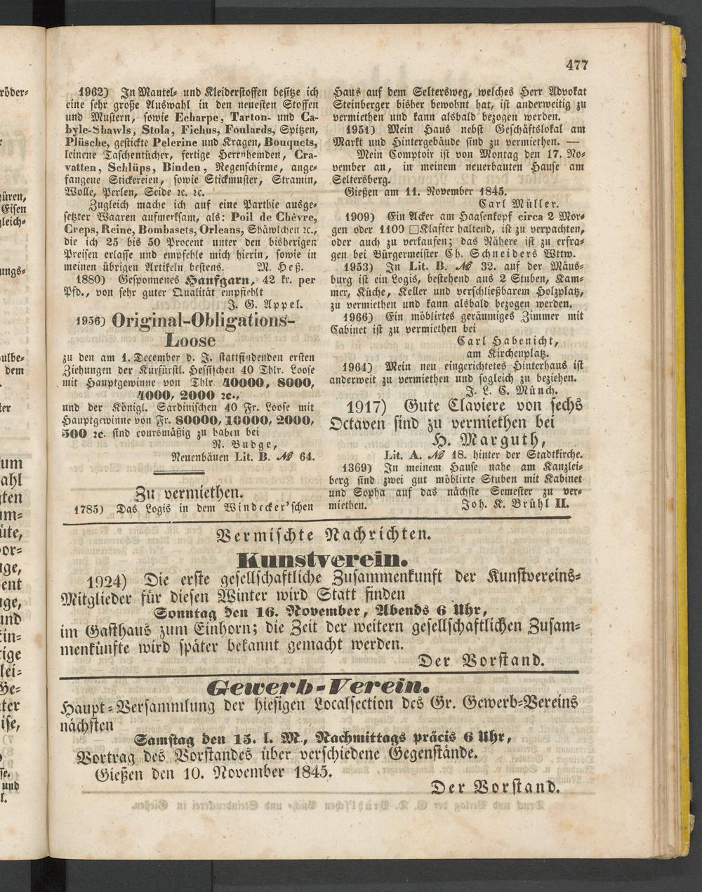 Anzeigeblatt für die Provinzialhauptstadt Gießen. 1840-1867