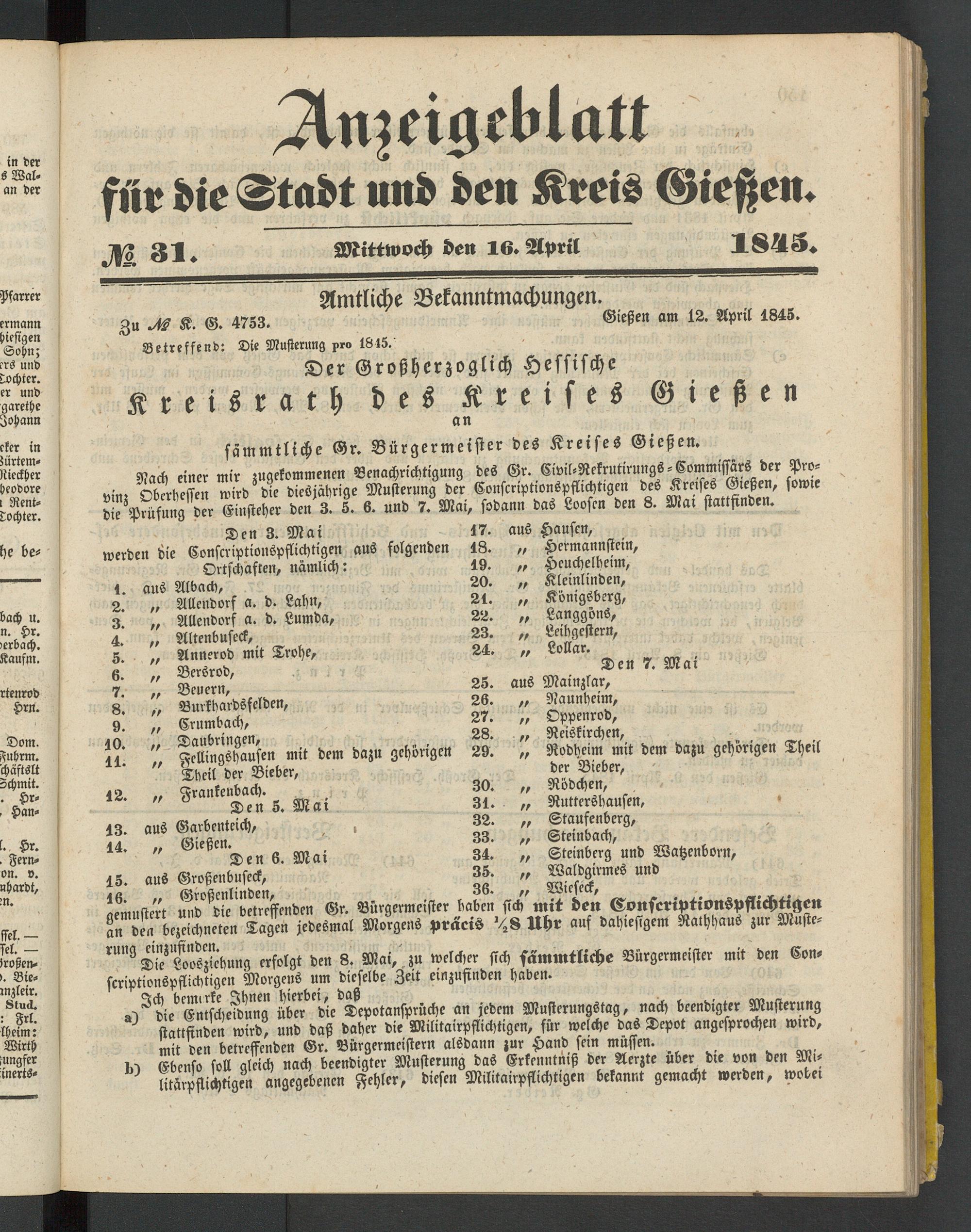 Anzeigeblatt für die Provinzialhauptstadt Gießen. 1840-1867