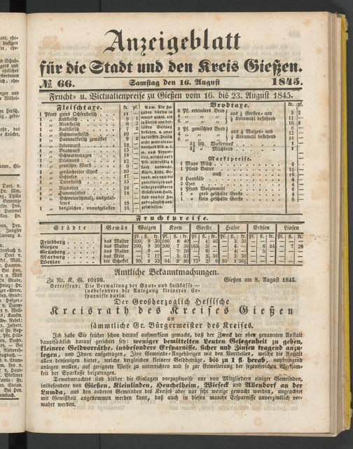Anzeigeblatt für die Provinzialhauptstadt Gießen. 1840-1867