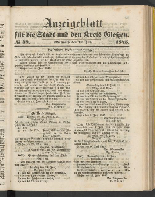 Anzeigeblatt für die Provinzialhauptstadt Gießen. 1840-1867