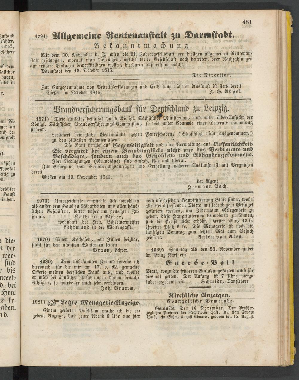 Anzeigeblatt für die Provinzialhauptstadt Gießen. 1840-1867
