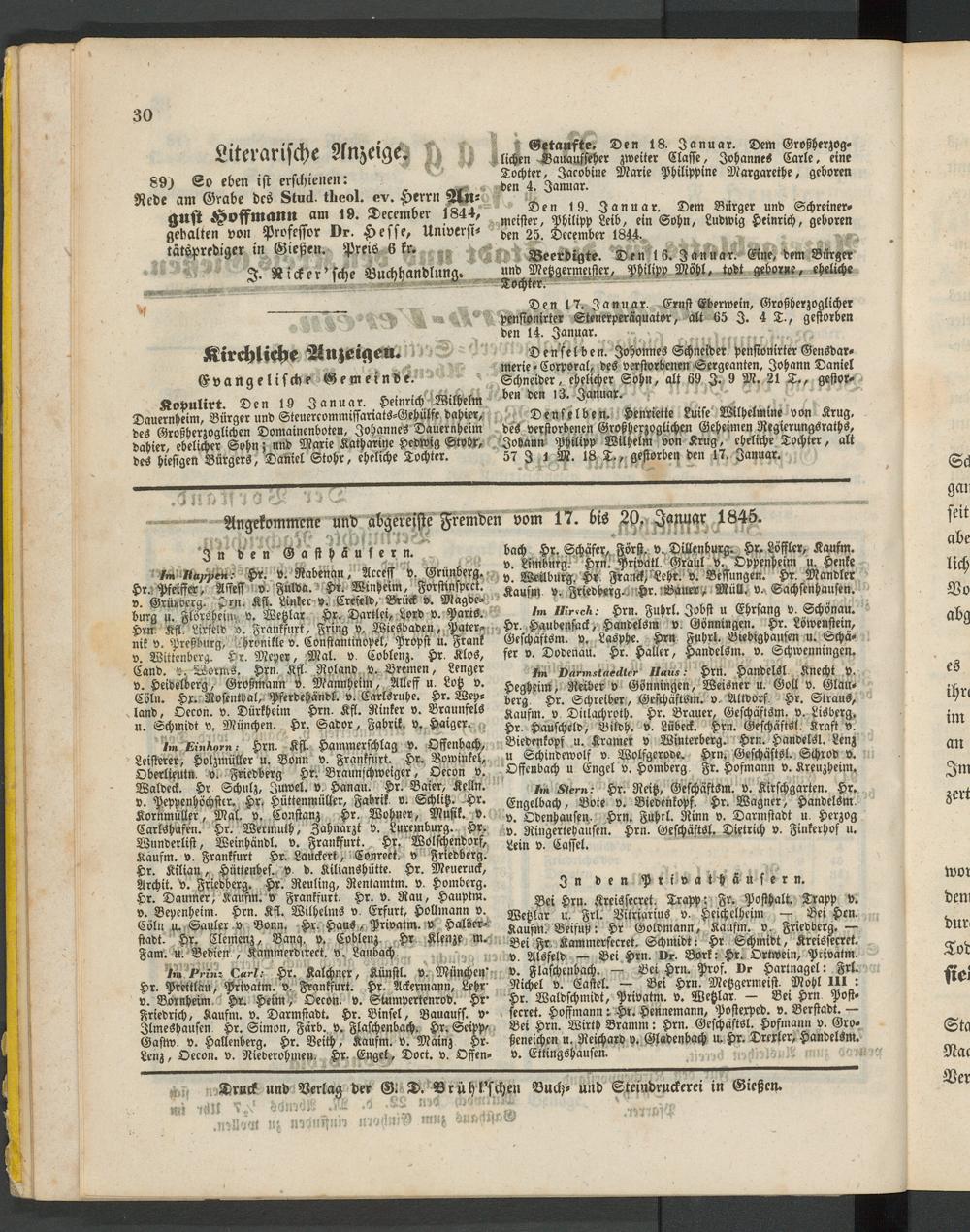 Anzeigeblatt für die Provinzialhauptstadt Gießen. 1840-1867