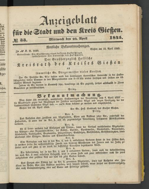 Anzeigeblatt für die Provinzialhauptstadt Gießen. 1840-1867