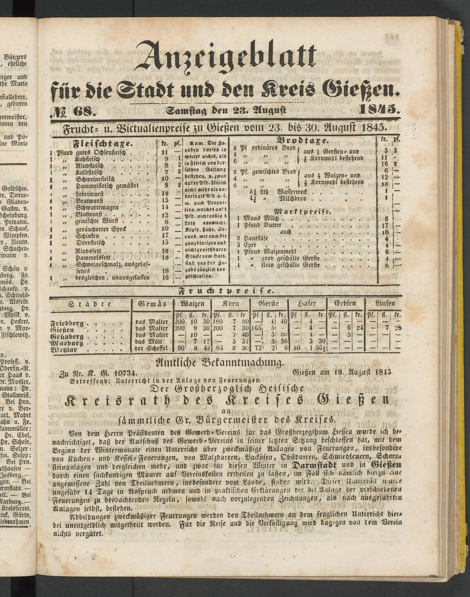Anzeigeblatt für die Provinzialhauptstadt Gießen. 1840-1867