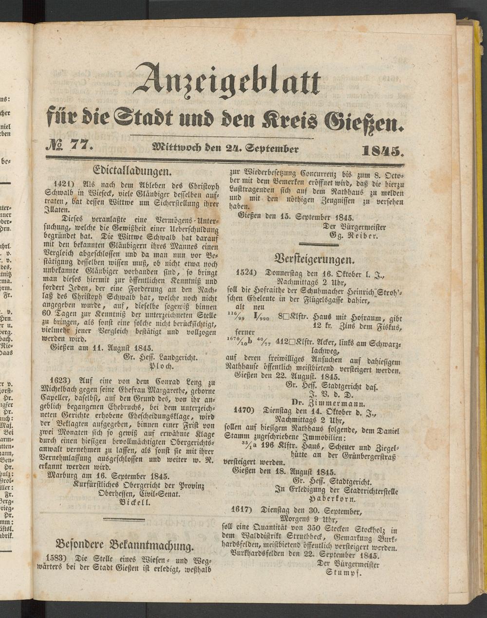 Anzeigeblatt für die Provinzialhauptstadt Gießen. 1840-1867