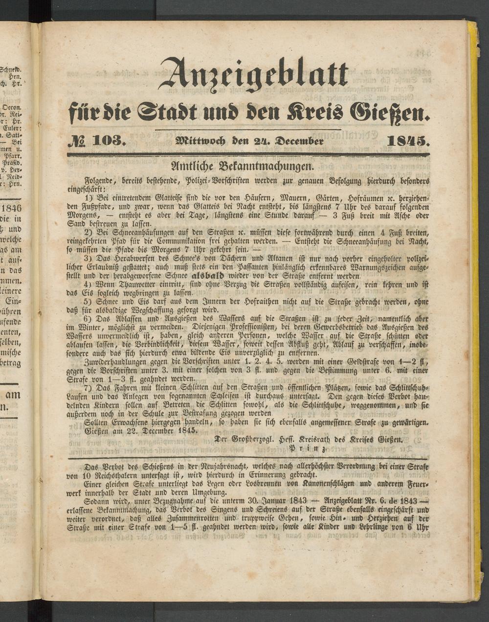 Anzeigeblatt für die Provinzialhauptstadt Gießen. 1840-1867