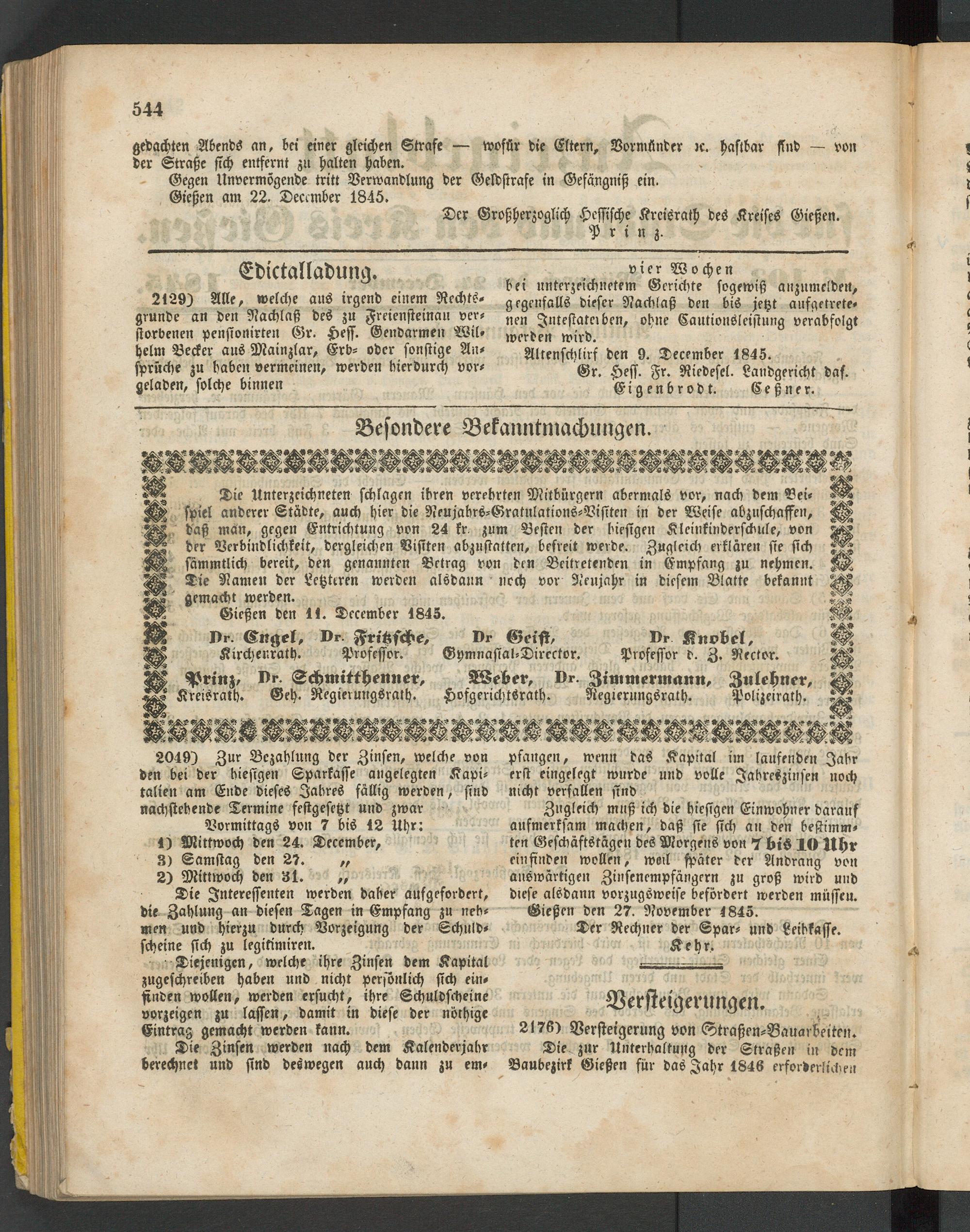 Anzeigeblatt für die Provinzialhauptstadt Gießen. 1840-1867