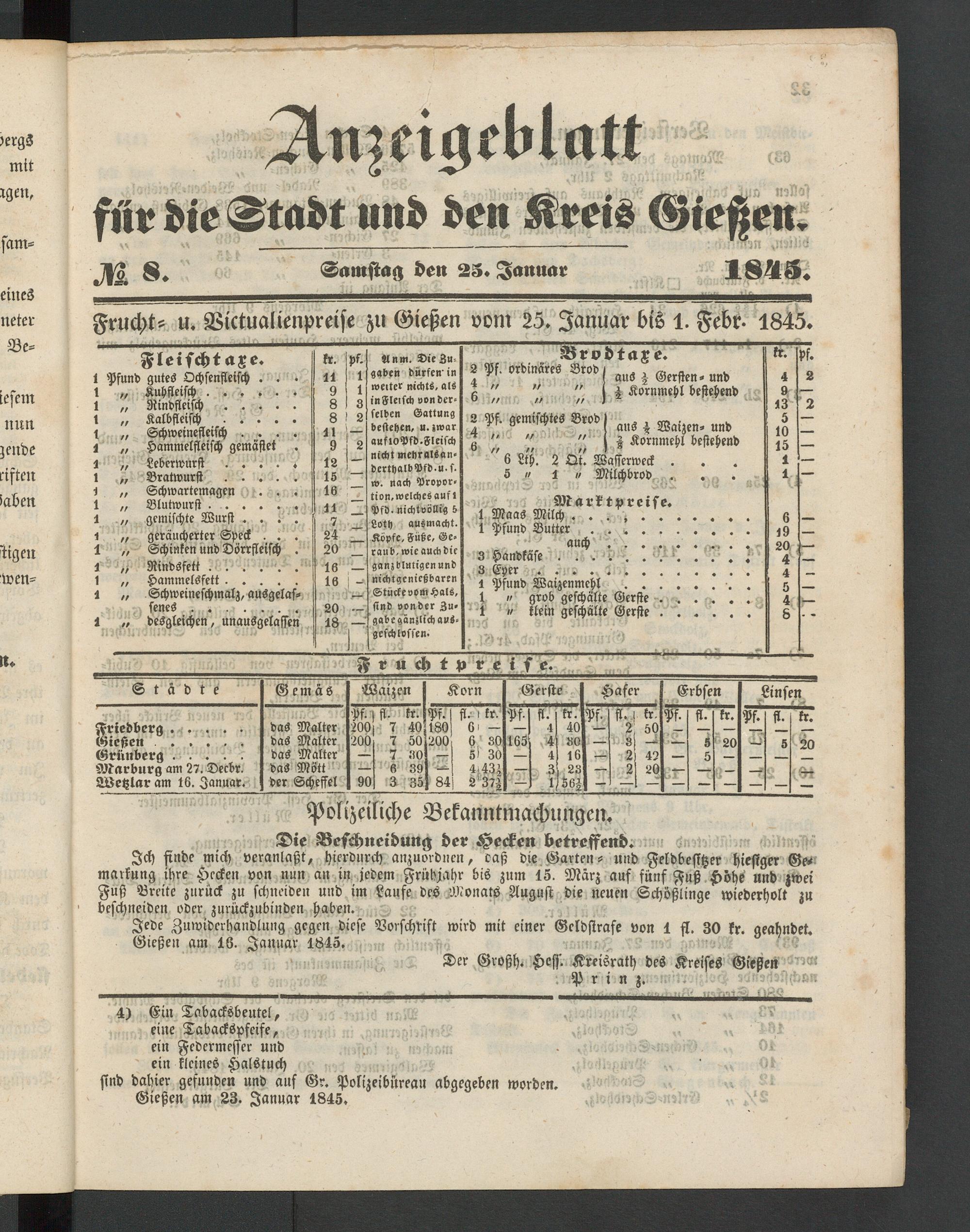 Anzeigeblatt für die Provinzialhauptstadt Gießen. 1840-1867