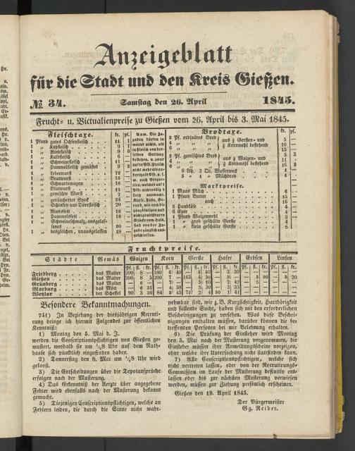 Anzeigeblatt für die Provinzialhauptstadt Gießen. 1840-1867