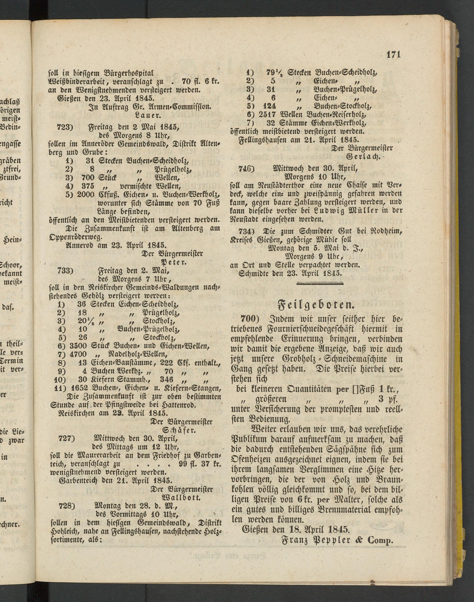 Anzeigeblatt für die Provinzialhauptstadt Gießen. 1840-1867