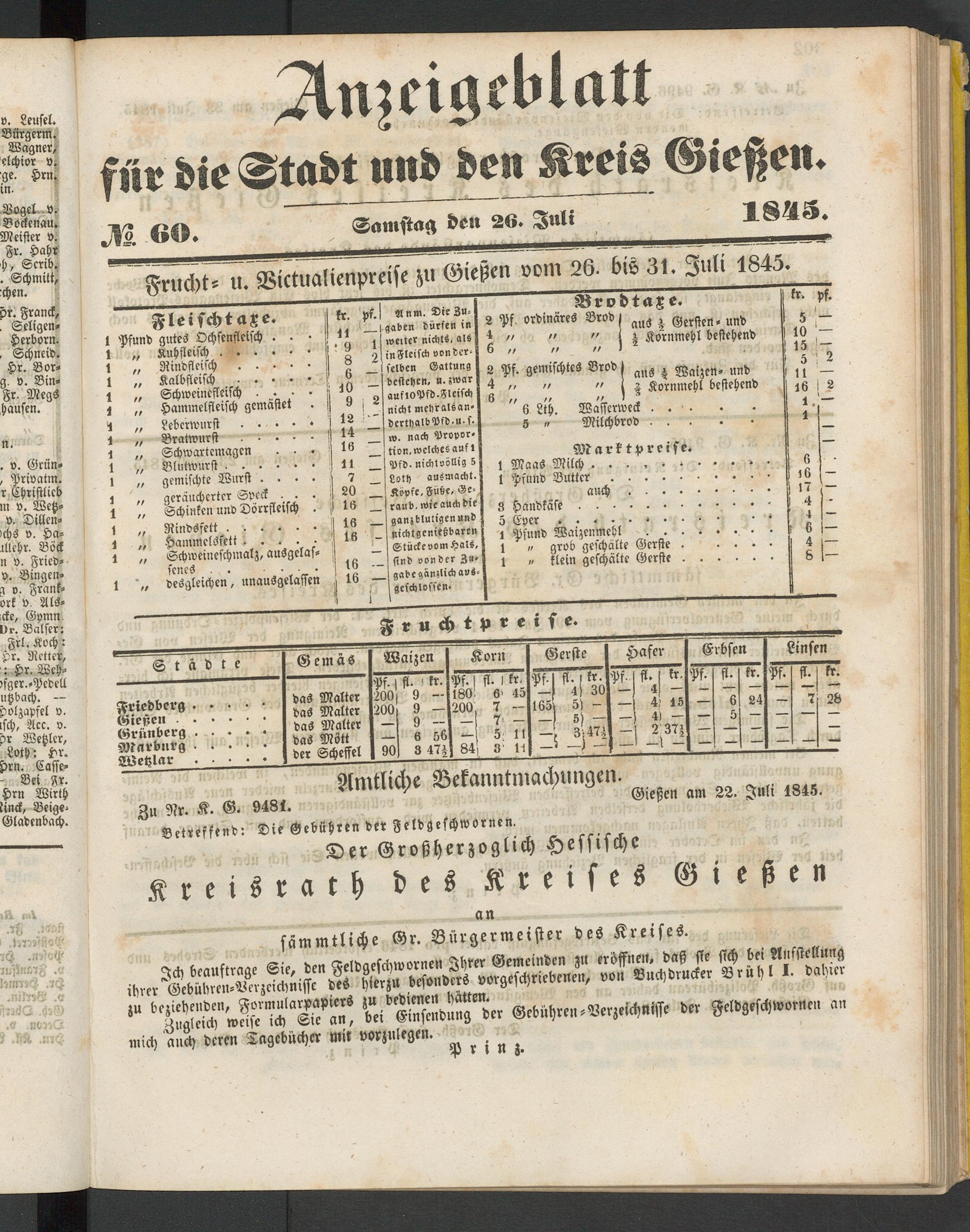 Anzeigeblatt für die Provinzialhauptstadt Gießen. 1840-1867