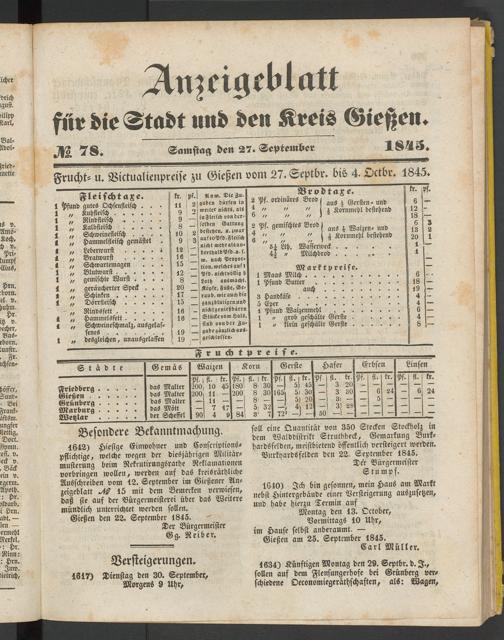 Anzeigeblatt für die Provinzialhauptstadt Gießen. 1840-1867