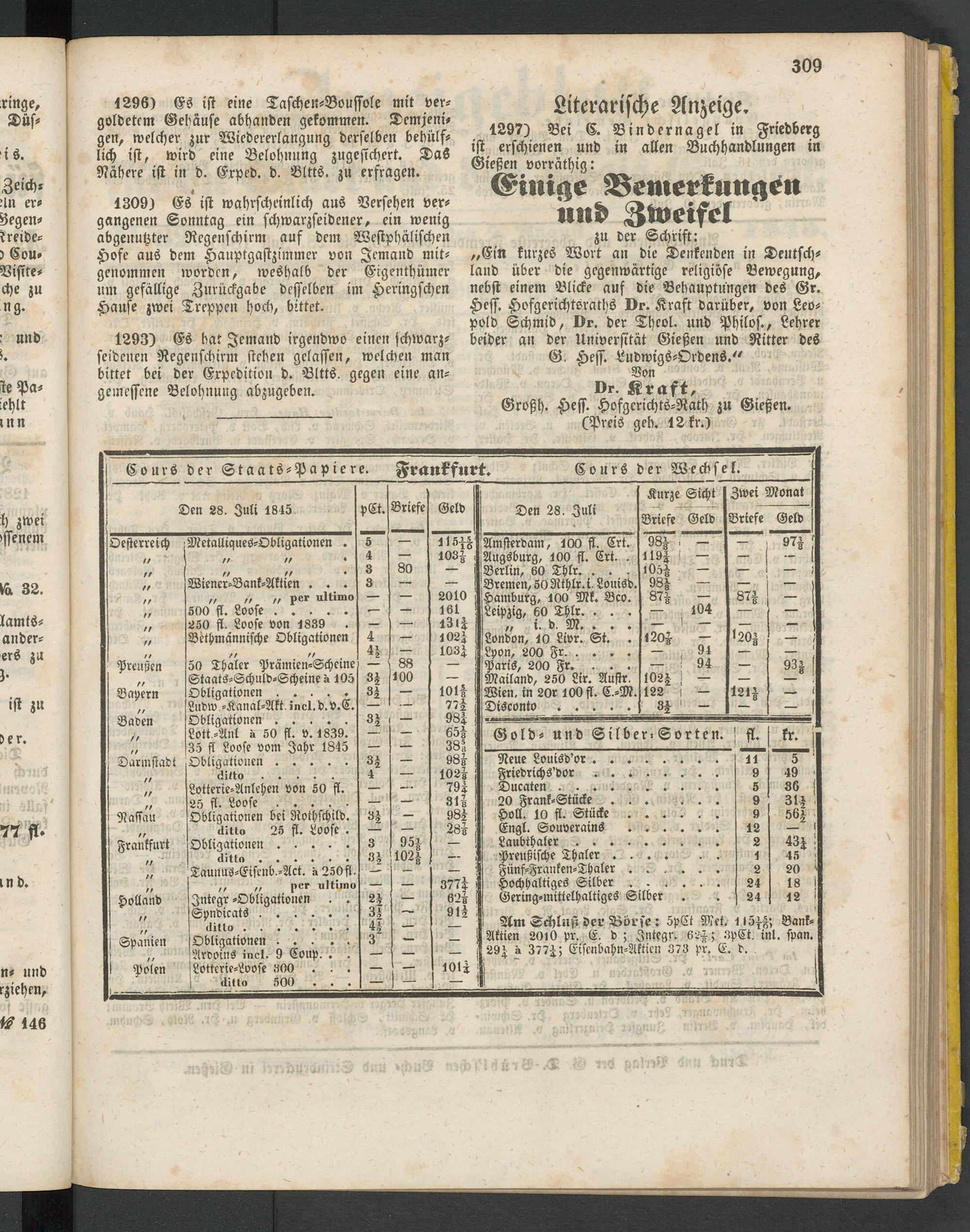 Anzeigeblatt für die Provinzialhauptstadt Gießen. 1840-1867