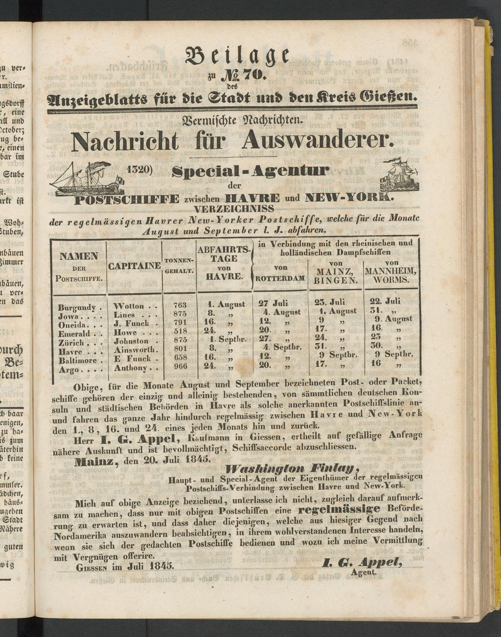 Anzeigeblatt für die Provinzialhauptstadt Gießen. 1840-1867