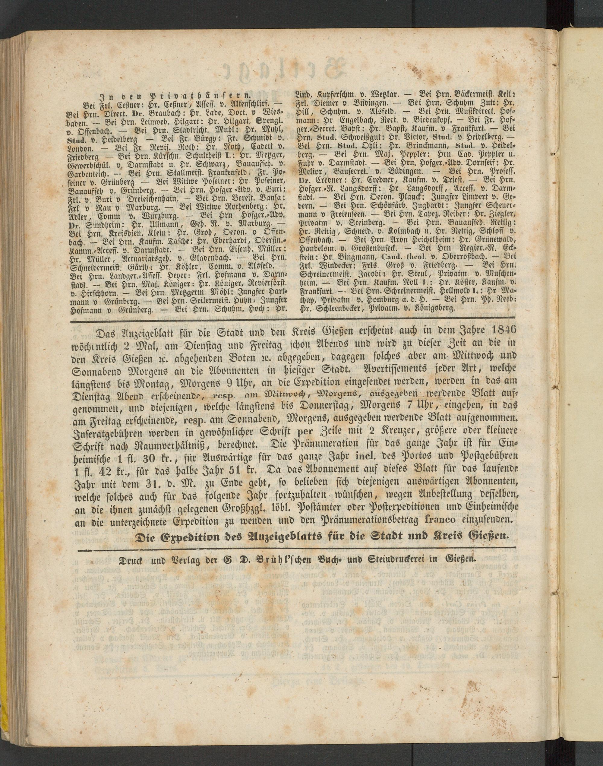 Anzeigeblatt für die Provinzialhauptstadt Gießen. 1840-1867