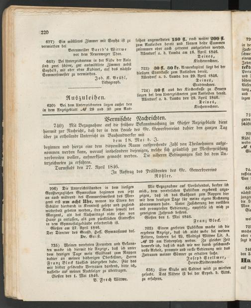 Anzeigeblatt für die Provinzialhauptstadt Gießen. 1840-1867