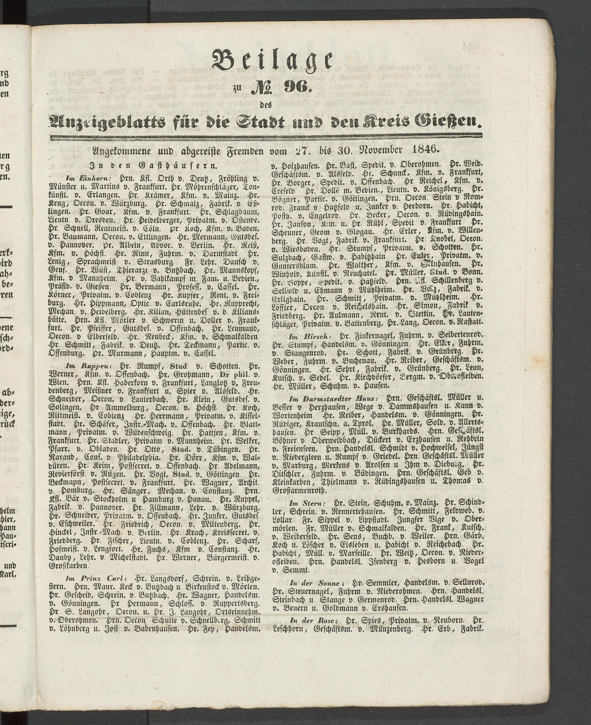 Anzeigeblatt für die Provinzialhauptstadt Gießen. 1840-1867
