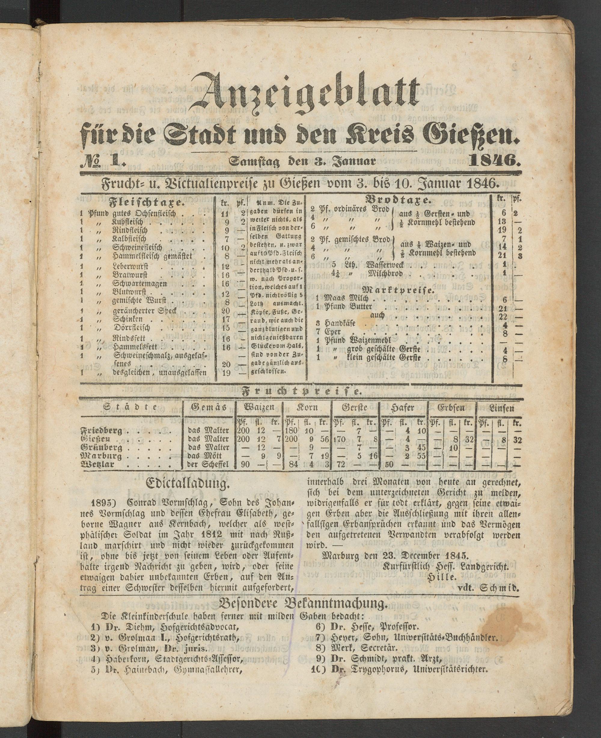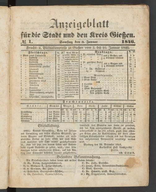 Anzeigeblatt für die Provinzialhauptstadt Gießen. 1840-1867