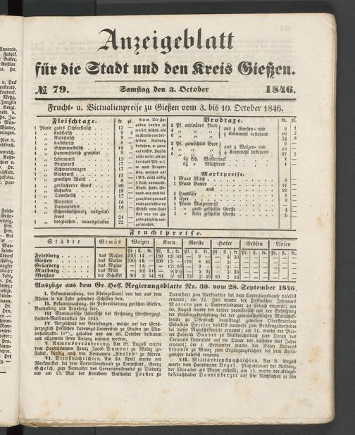 Anzeigeblatt für die Provinzialhauptstadt Gießen. 1840-1867