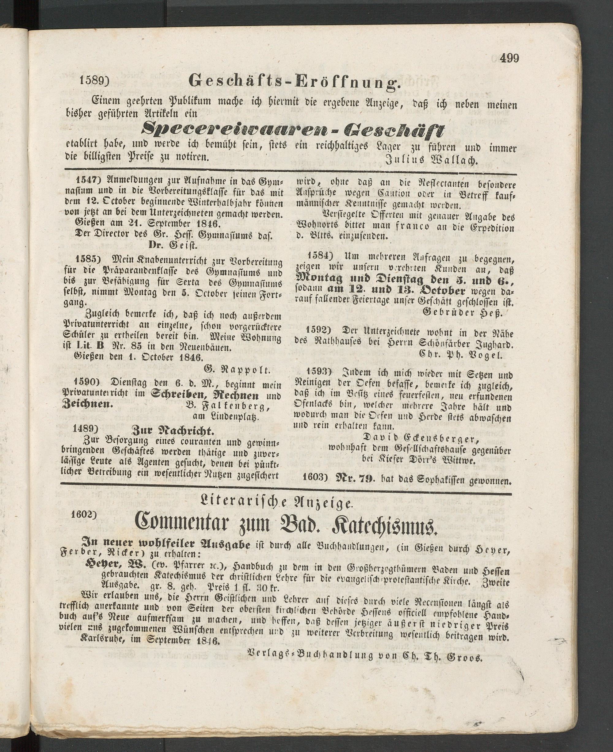 Anzeigeblatt für die Provinzialhauptstadt Gießen. 1840-1867