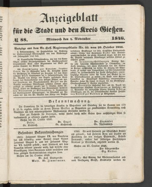 Anzeigeblatt für die Provinzialhauptstadt Gießen. 1840-1867