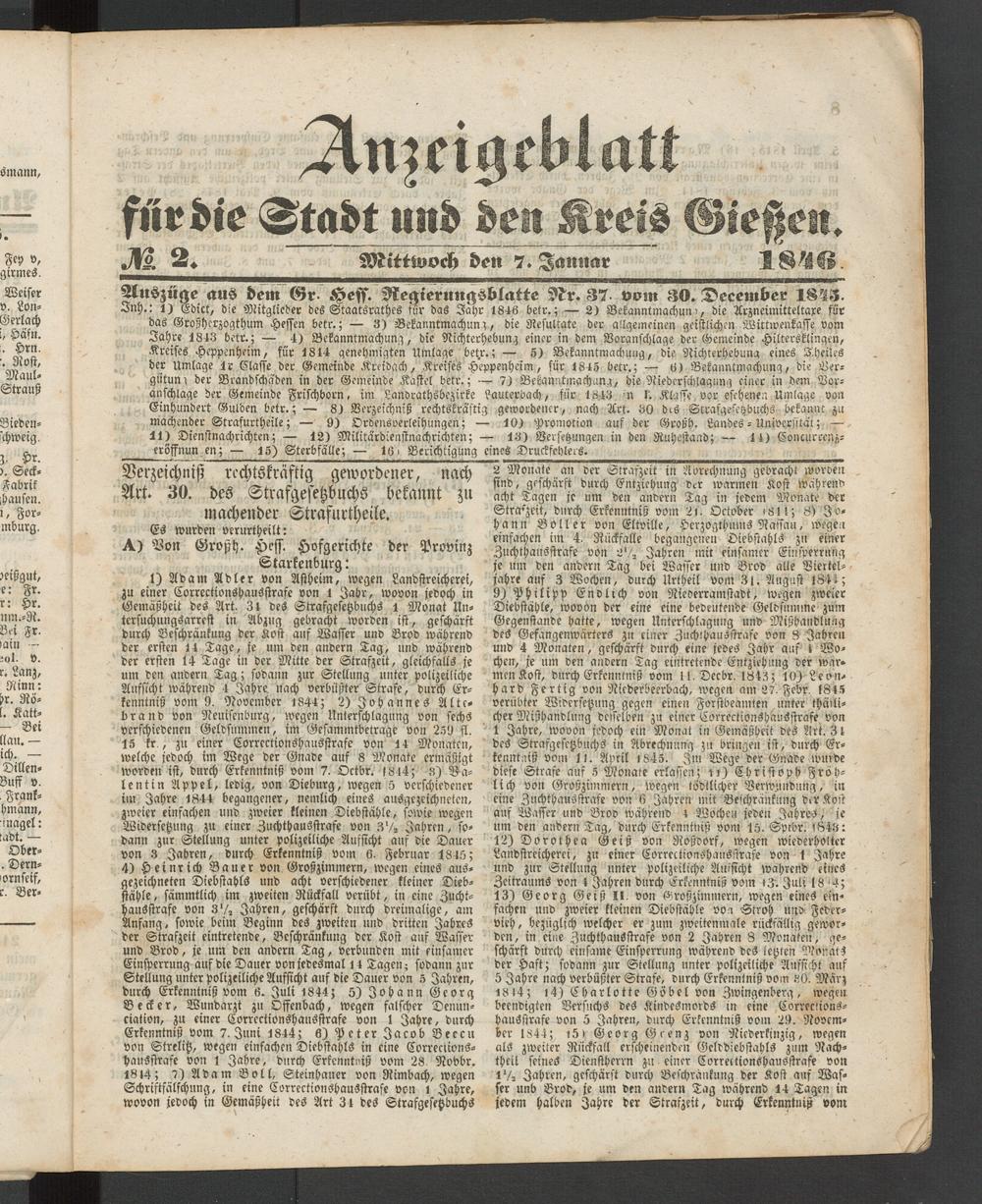 Anzeigeblatt für die Provinzialhauptstadt Gießen. 1840-1867