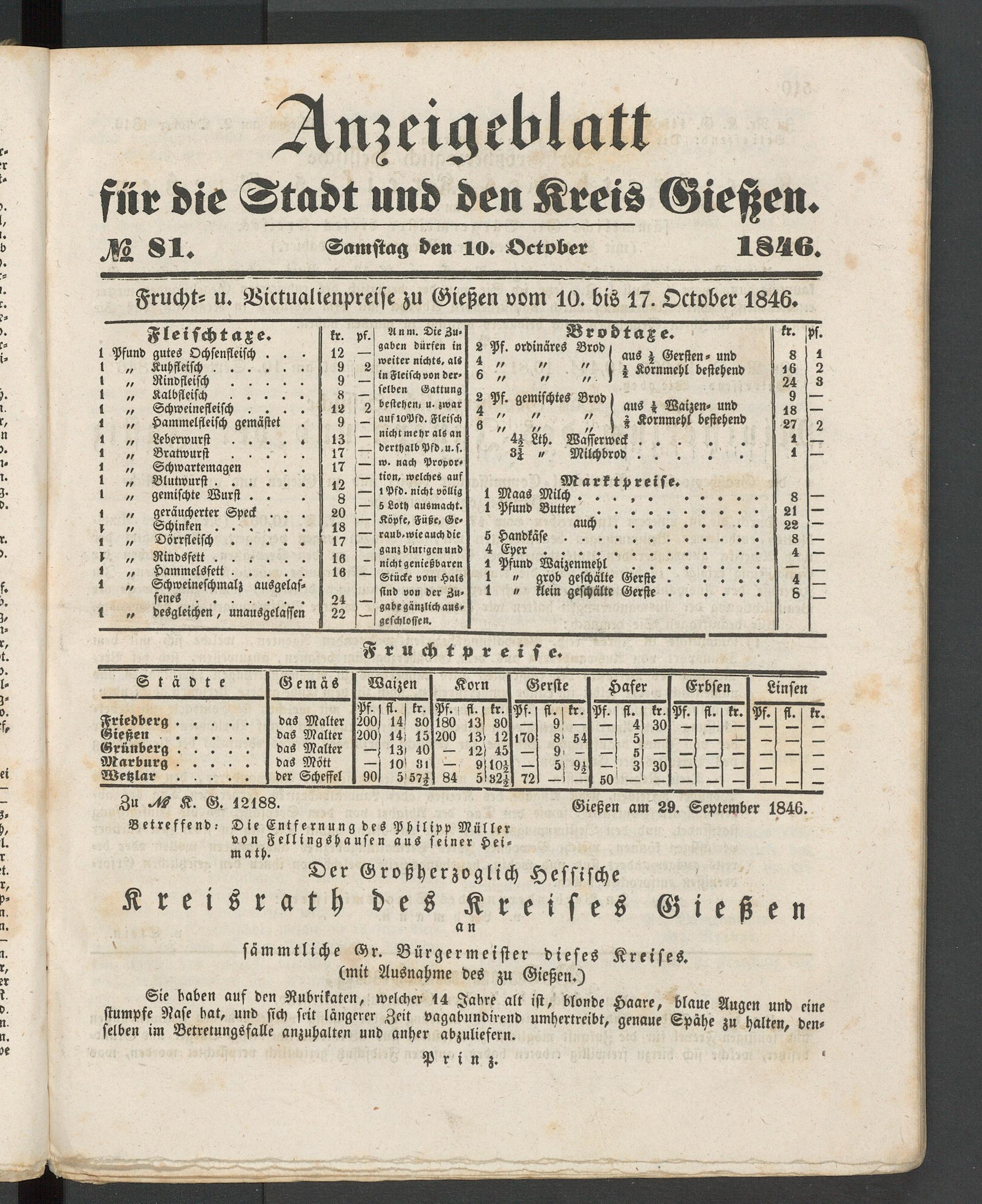 Anzeigeblatt für die Provinzialhauptstadt Gießen. 1840-1867