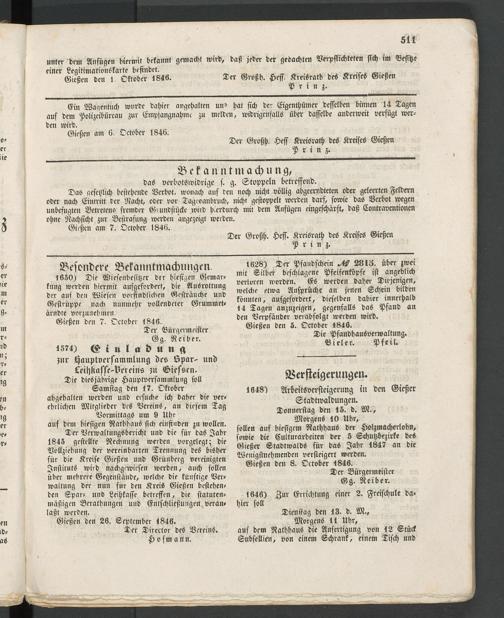 Anzeigeblatt für die Provinzialhauptstadt Gießen. 1840-1867