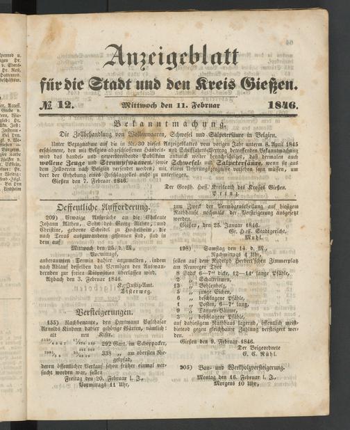 Anzeigeblatt für die Provinzialhauptstadt Gießen. 1840-1867