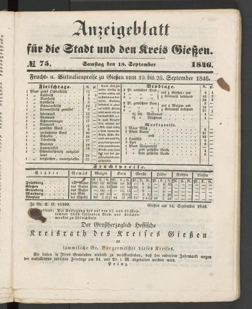 Anzeigeblatt für die Provinzialhauptstadt Gießen. 1840-1867