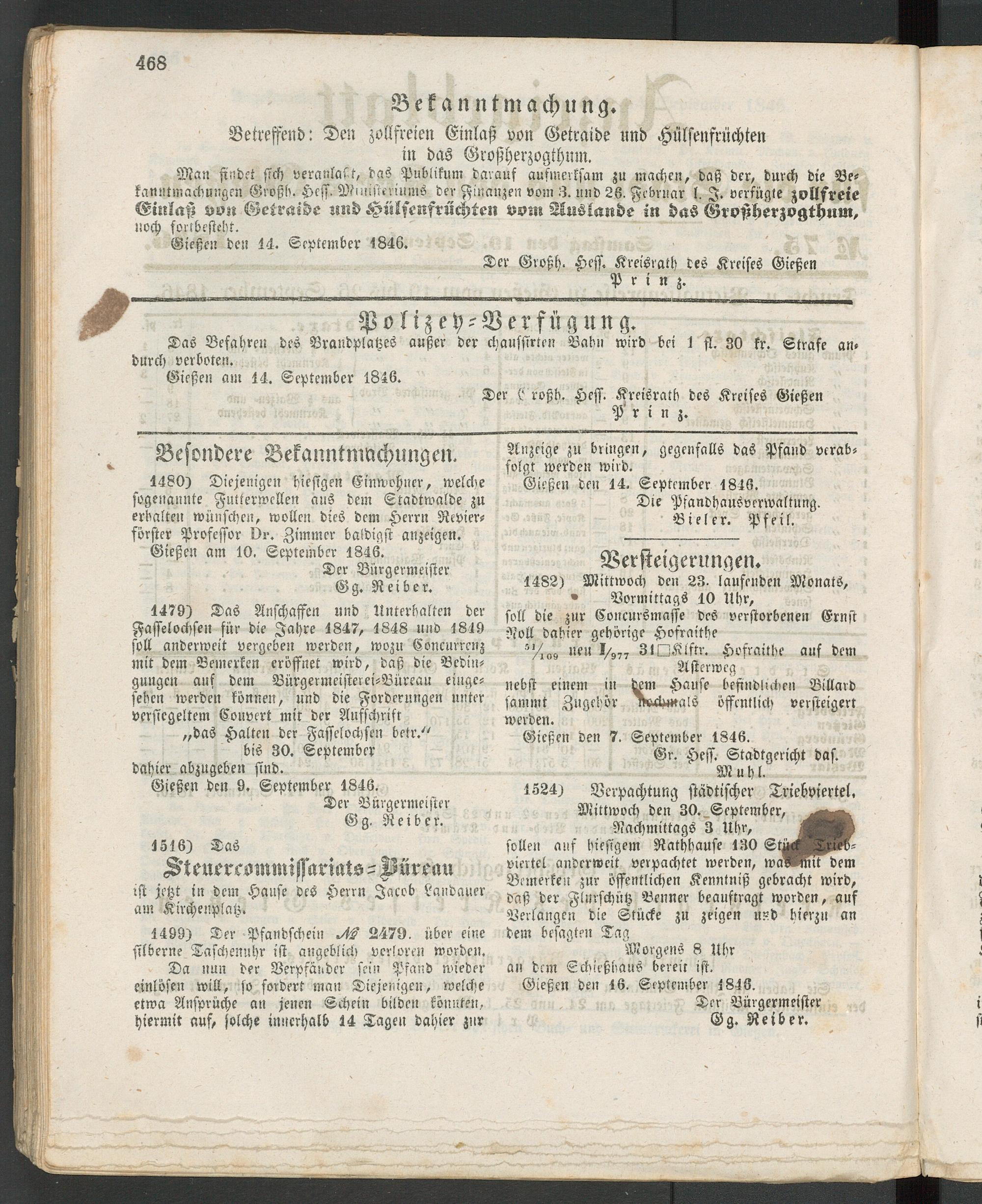 Anzeigeblatt für die Provinzialhauptstadt Gießen. 1840-1867