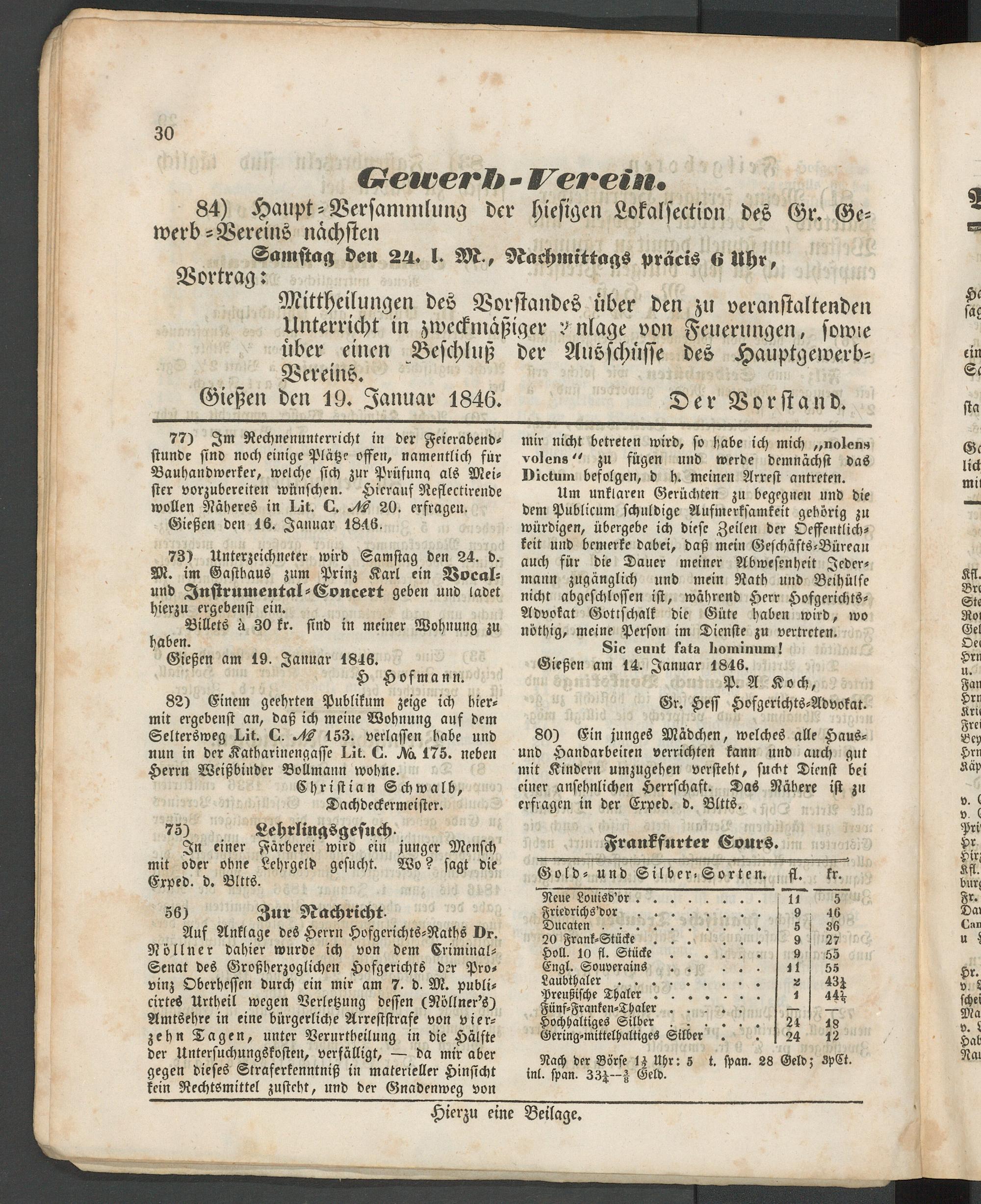 Anzeigeblatt für die Provinzialhauptstadt Gießen. 1840-1867
