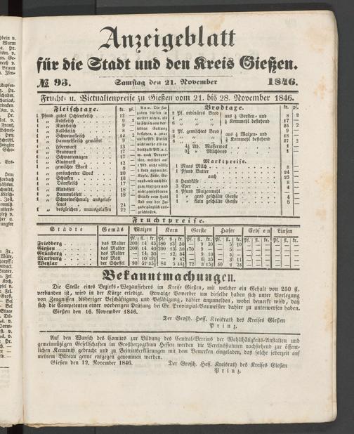 Anzeigeblatt für die Provinzialhauptstadt Gießen. 1840-1867