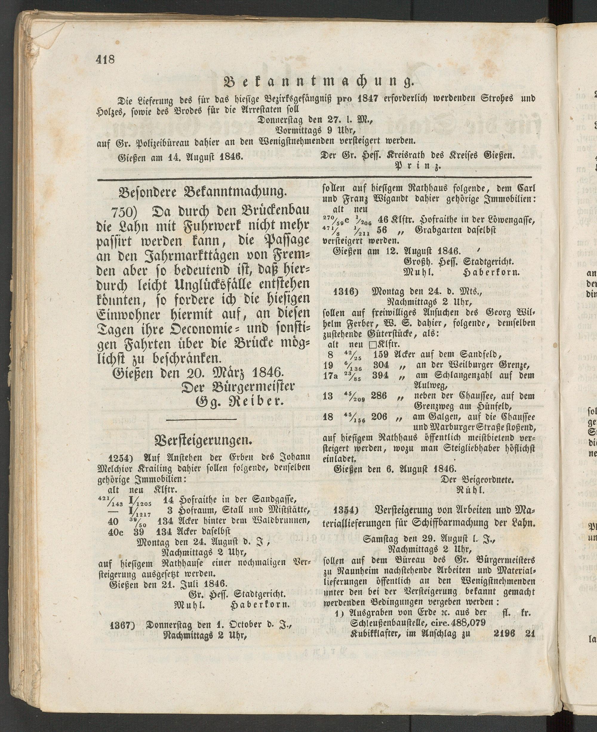 Anzeigeblatt für die Provinzialhauptstadt Gießen. 1840-1867