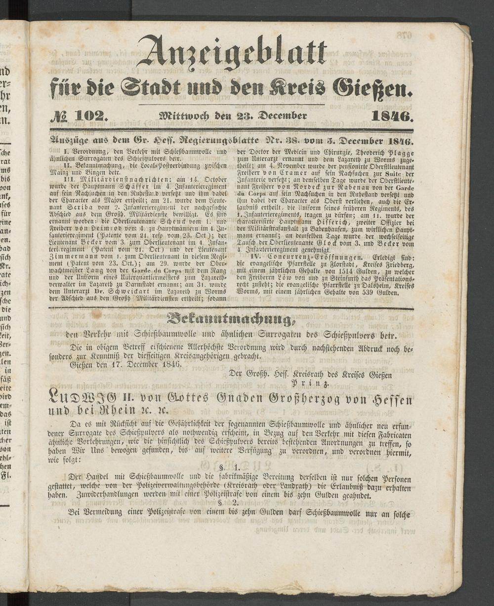 Anzeigeblatt für die Provinzialhauptstadt Gießen. 1840-1867