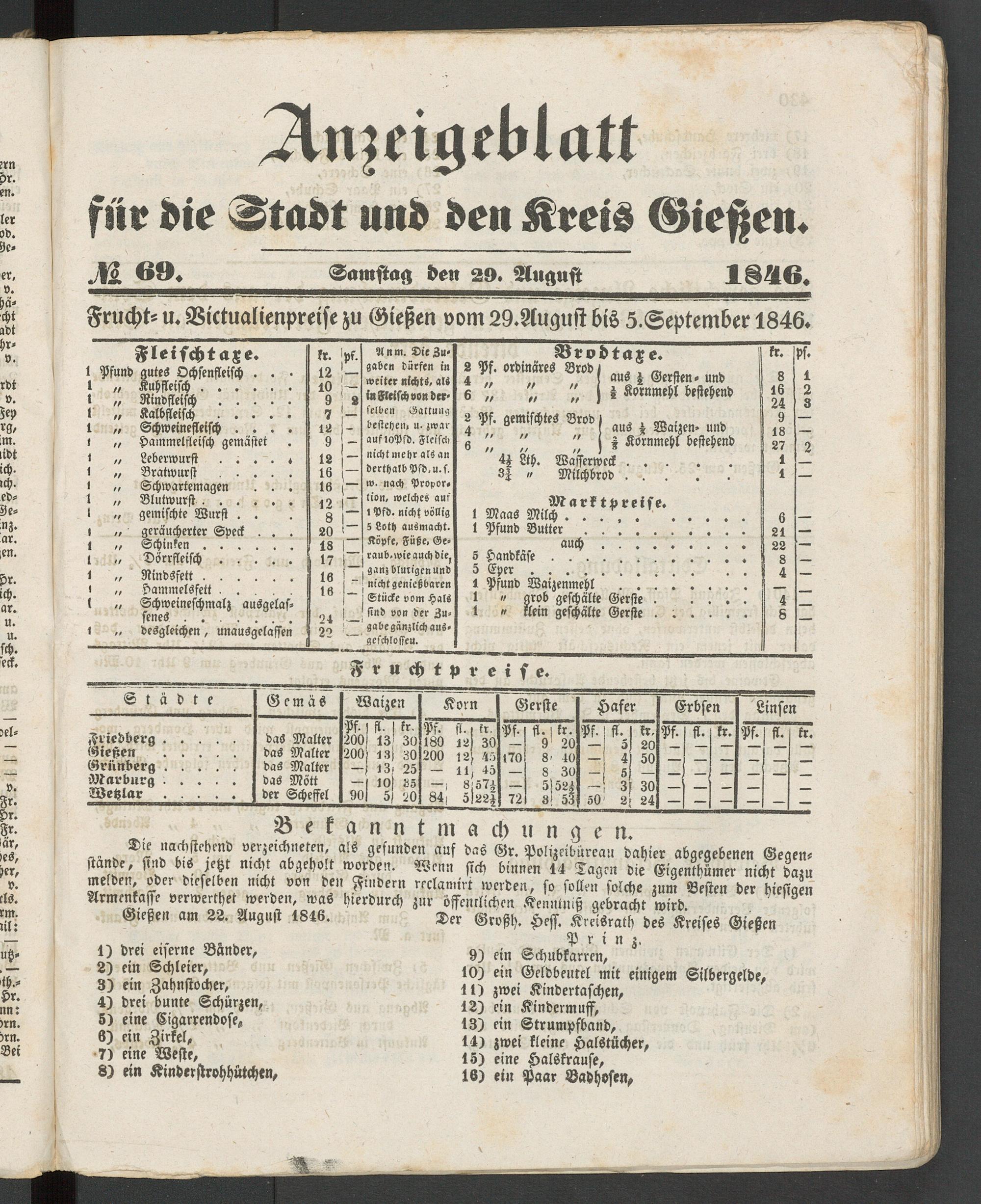 Anzeigeblatt für die Provinzialhauptstadt Gießen. 1840-1867