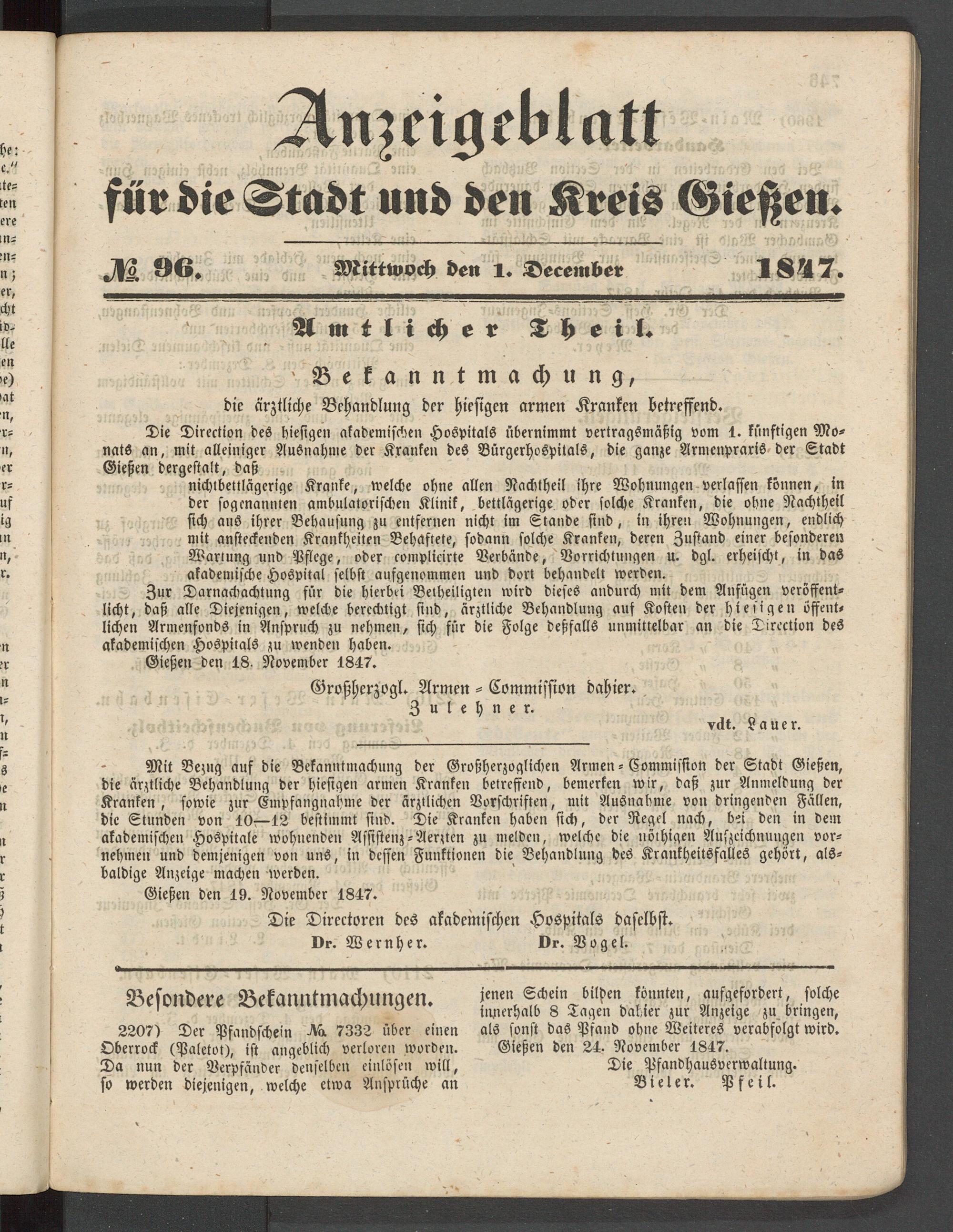 Anzeigeblatt für die Provinzialhauptstadt Gießen. 1840-1867
