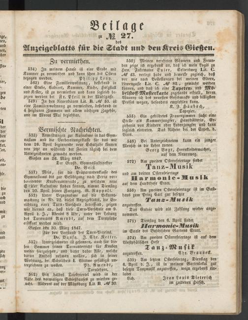 Anzeigeblatt für die Provinzialhauptstadt Gießen. 1840-1867