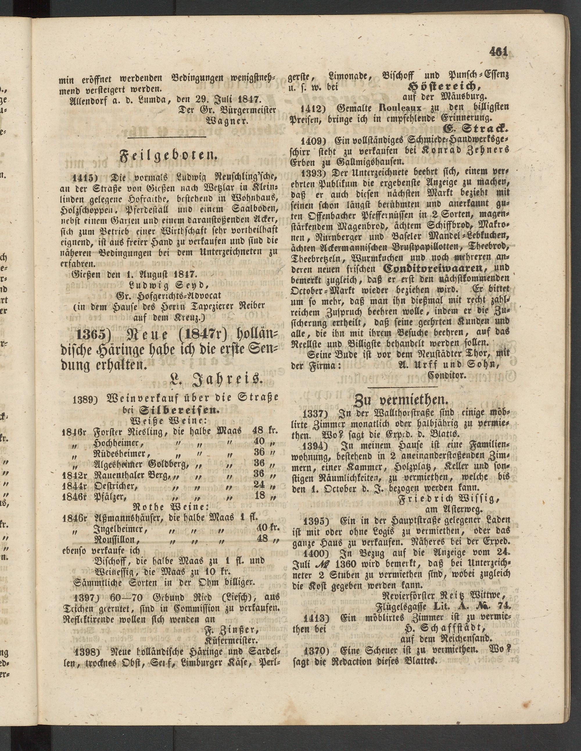 Anzeigeblatt für die Provinzialhauptstadt Gießen. 1840-1867
