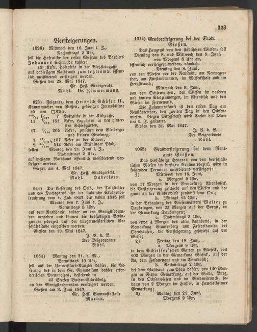 Anzeigeblatt für die Provinzialhauptstadt Gießen. 1840-1867