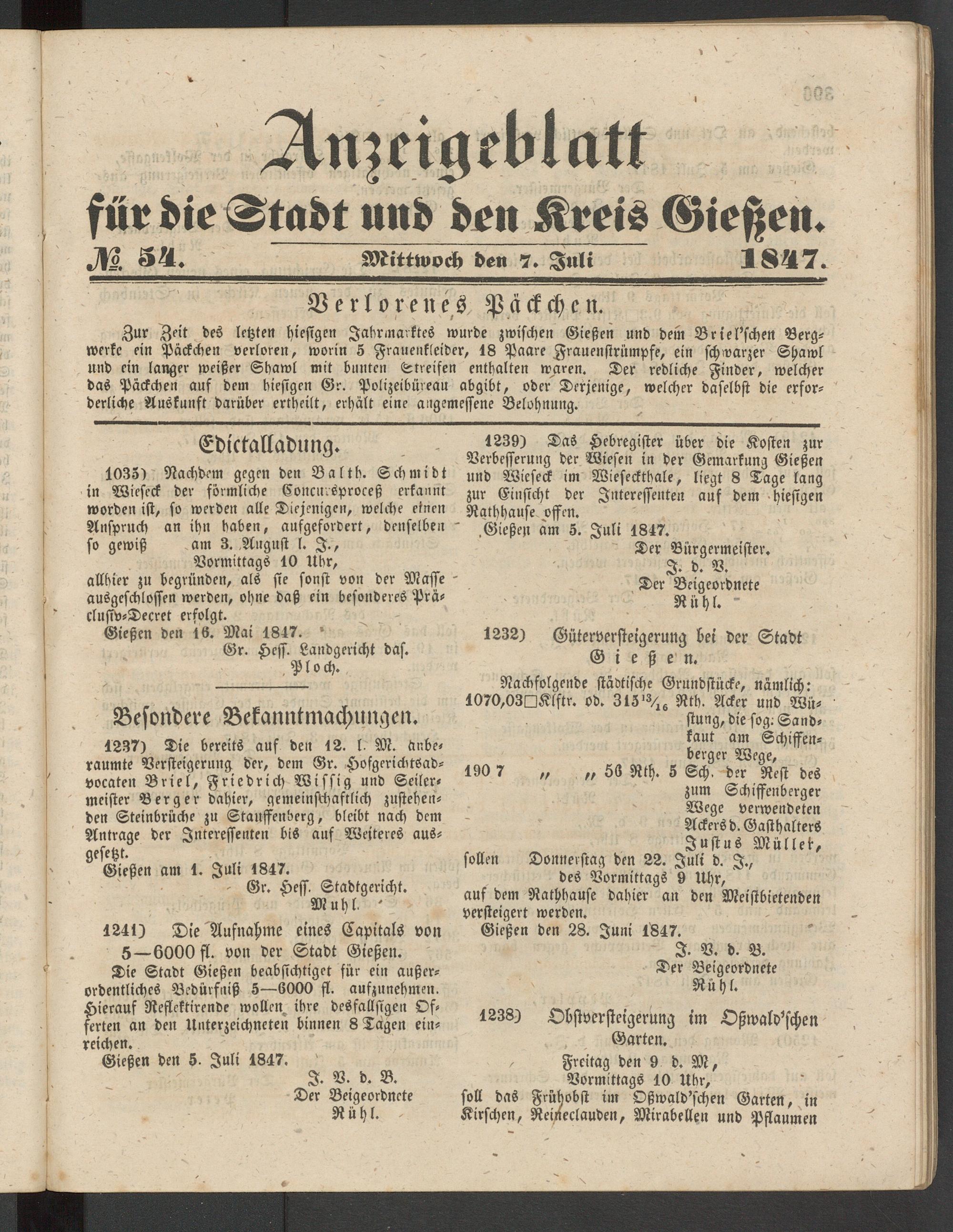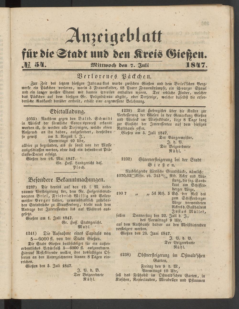 Anzeigeblatt für die Provinzialhauptstadt Gießen. 1840-1867
