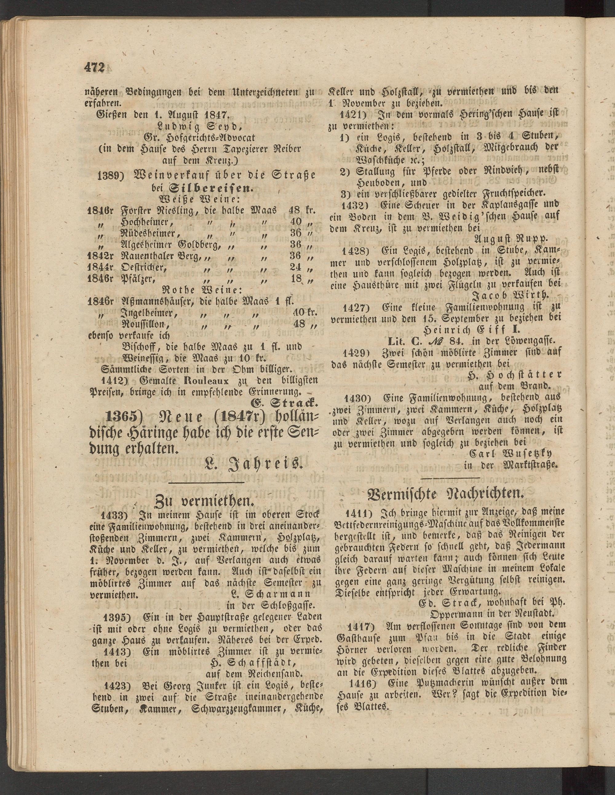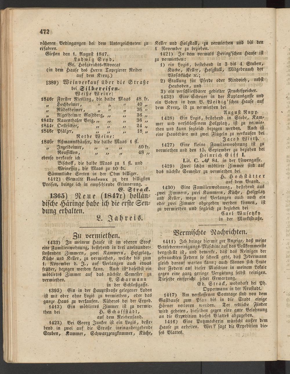 Anzeigeblatt für die Provinzialhauptstadt Gießen. 1840-1867