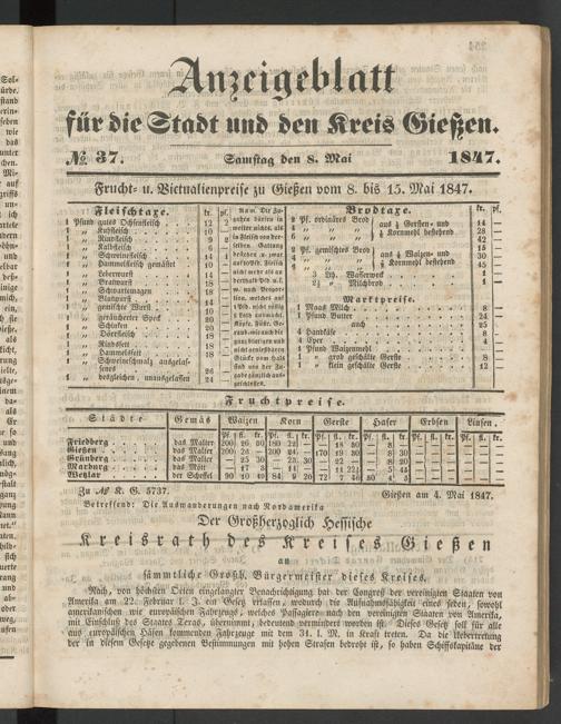 Anzeigeblatt für die Provinzialhauptstadt Gießen. 1840-1867