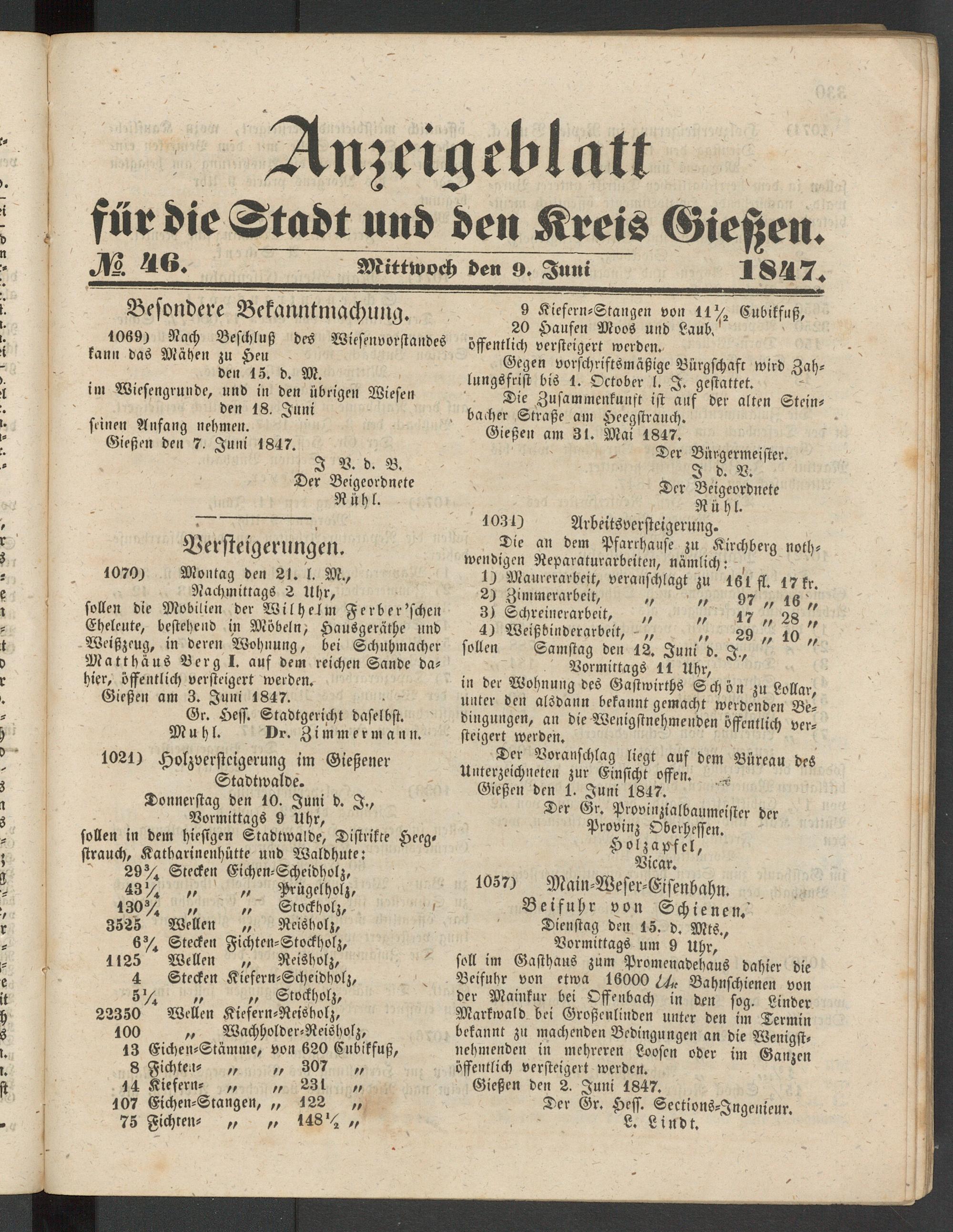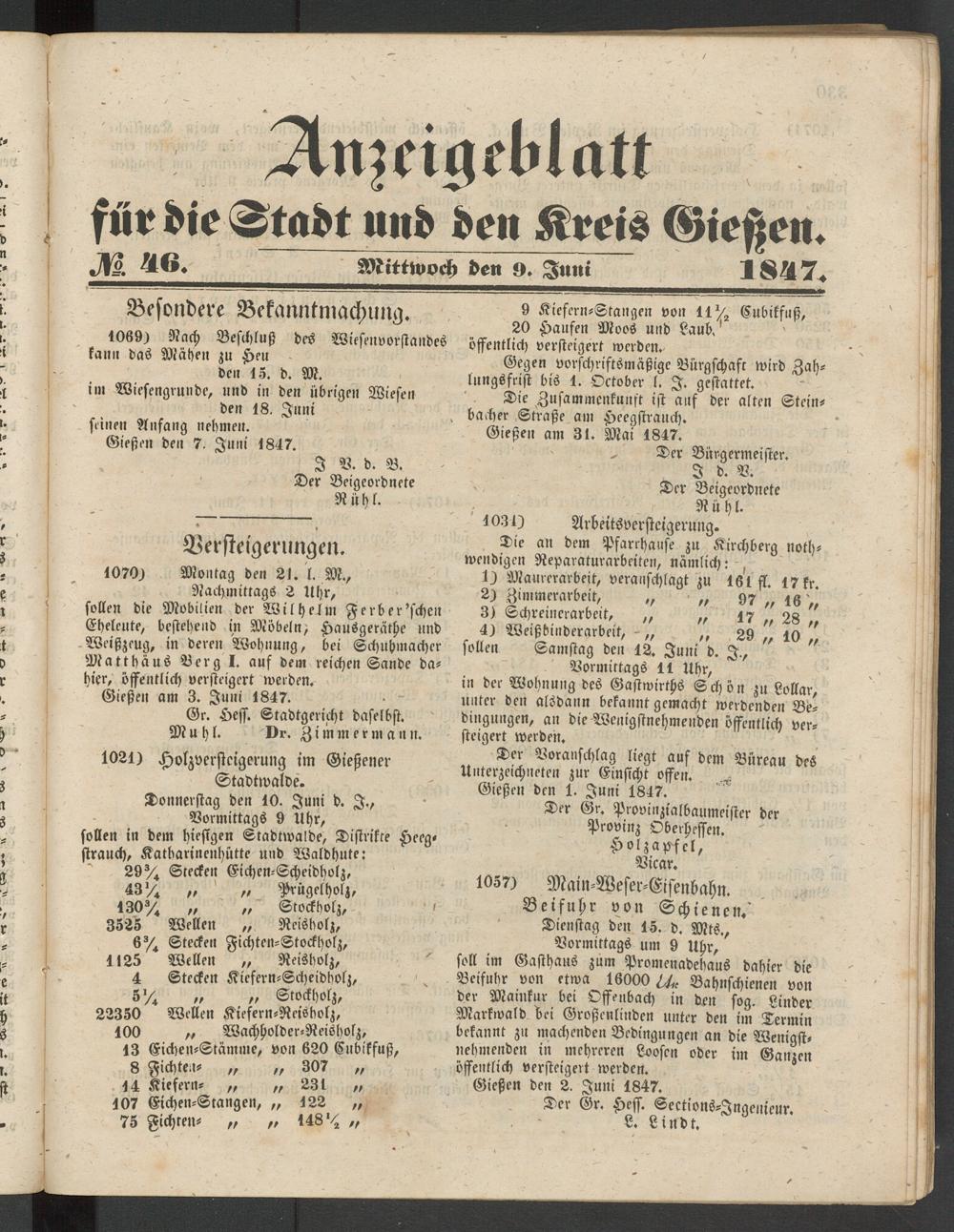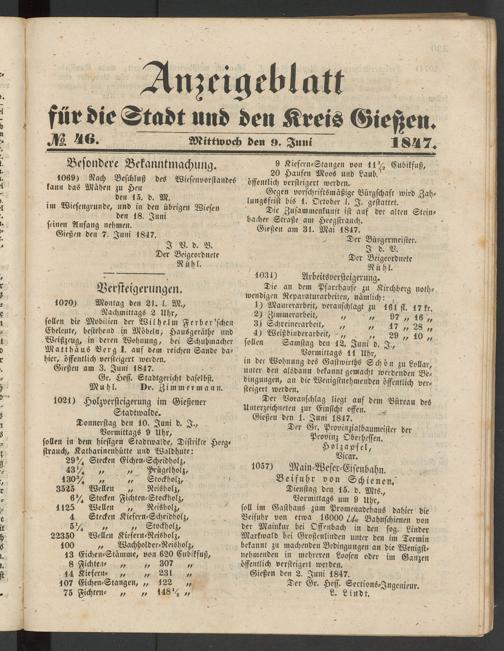 Anzeigeblatt für die Provinzialhauptstadt Gießen. 1840-1867
