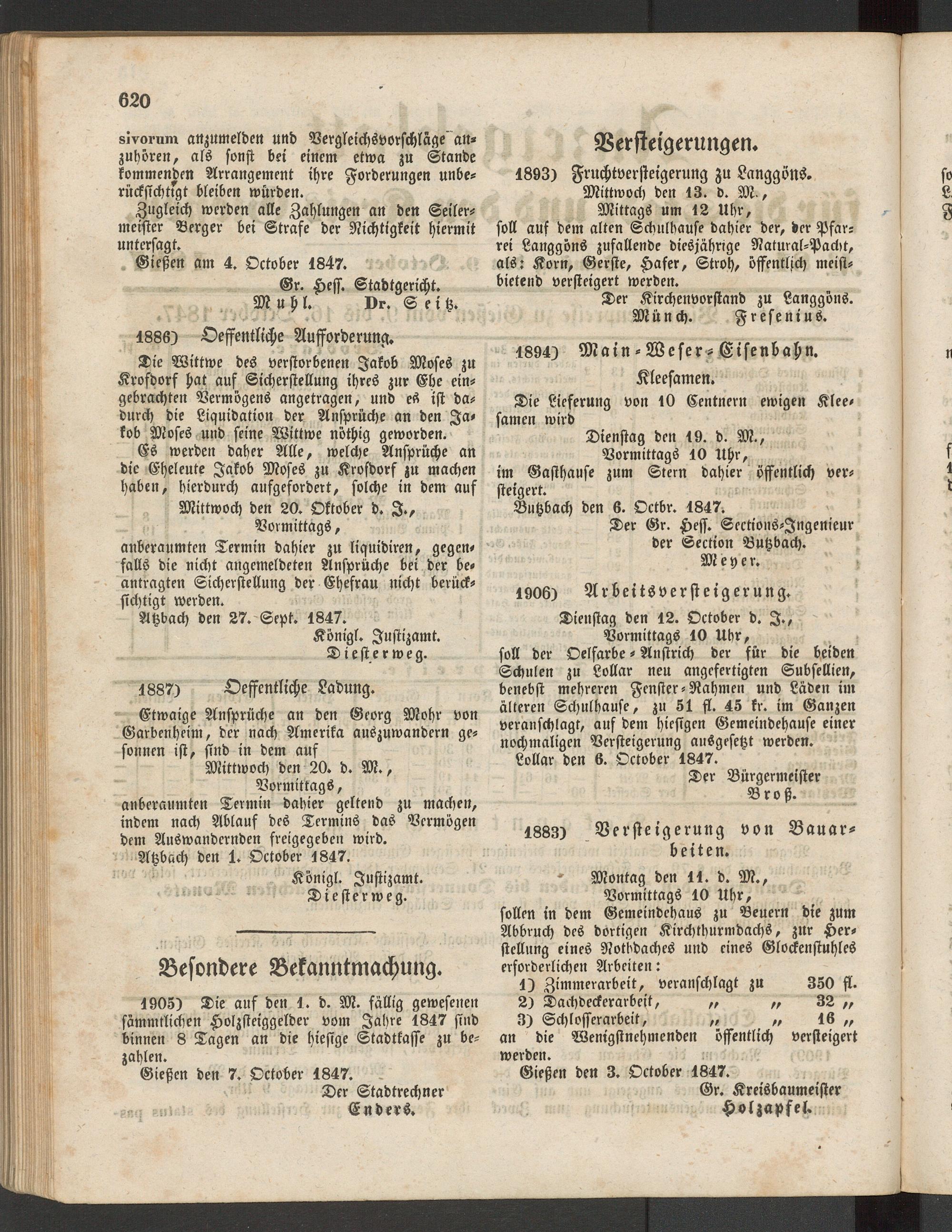 Anzeigeblatt für die Provinzialhauptstadt Gießen. 1840-1867