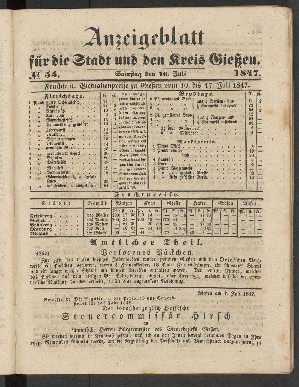 Anzeigeblatt für die Provinzialhauptstadt Gießen. 1840-1867