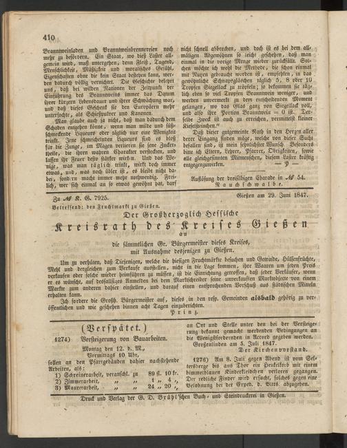 Anzeigeblatt für die Provinzialhauptstadt Gießen. 1840-1867