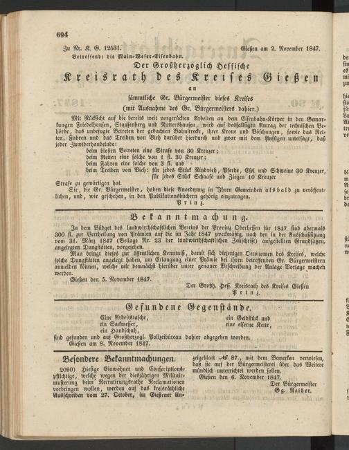 Anzeigeblatt für die Provinzialhauptstadt Gießen. 1840-1867